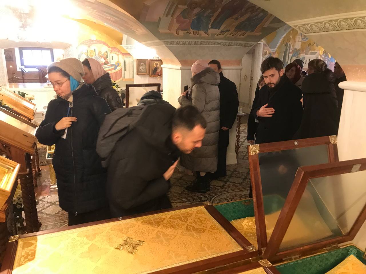 Вместе с благочинным Дивеевского округа иереем Владимиром Каргиным паломники поклонились мощам преподобного Серафима Саровского и посетили удивительной красоты Благовещенский собор, в нижнем храме которого находится прижизненный портрет батюшки Серафима.
