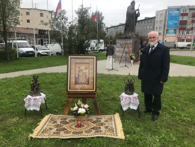 По окончании Божественной литургии в Предтеченском храме, которую возглавил действительный член ИППО митрополит Мурманский и Мончегорский Митрофан, участники богослужения прошли крестным ходом к главной площади города, где и был был установлен памятник по решению местных властей.