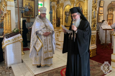В праздничный день Начальник Миссии возглавил служение Божественной литургии в Троицком соборе Иерусалима. Архимандриту Александру сослужило духовенство Миссии. После отпуста Литургии духовенство в центре храма совершило славление праздника, затем архимандрит Александр, который в этот день отмечает 35-летие своей иерейской хиротонии, обратился к богомольцам с пастырским словом.
