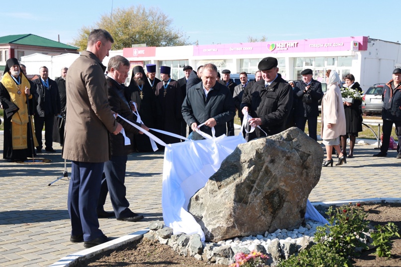 Право открыть памятник было предоставлено руководителю Курганского отделения Общества Александру Брюханову, председателю Курганской областной Думы Дмитрию Фролову, депутату облдумы и члену регионального отделения ИППО Олегу Попову, а также главе Звериноголовского района Олегу Курочкину. Чин освящения памятного камня совершил епископ Владимир в сослужении клириков Шадринской епархии.