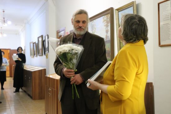От лица Тульского отделения ИППО действительный член Общества Марина Шуманская подарила художнику издания Тульского отделения: сборник, посвящённый Тульскому отделению ИППО, и книгу протоиерея Михаила Бурцева, члена ИППО дореволюционного периода.
