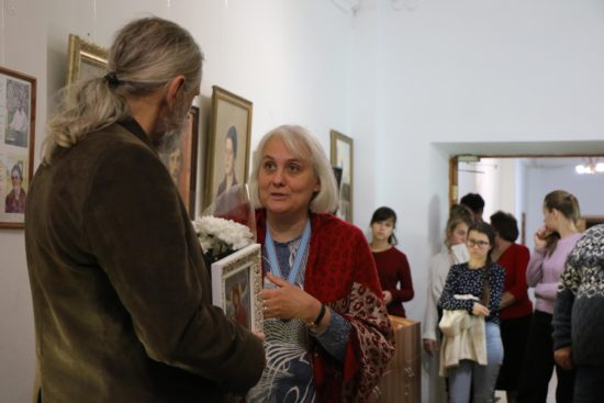Ольга Евсюкова, действительный член Тульского отделения ИППО, которая инициировала приезд художника в Тулу, передала ему в дар икону и книгу о Щегловском Богородничном монастыре.
