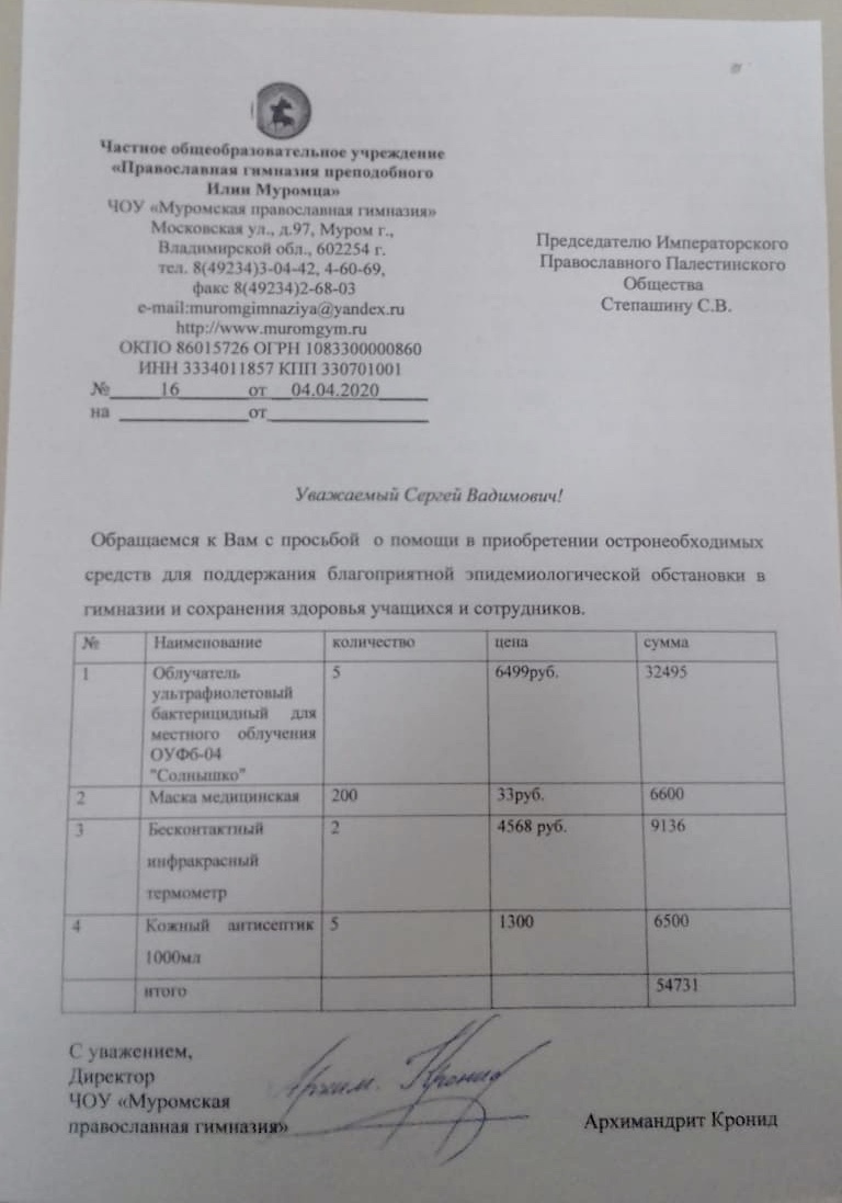 Адресную помощь получит Муромская православная гимназия имени Ильи Муромца, председателем Наблюдательного совета которой многие годы является Сергей Степашин, и православная гимназия в Городне, попечителем которой также является Председатель ИППО.