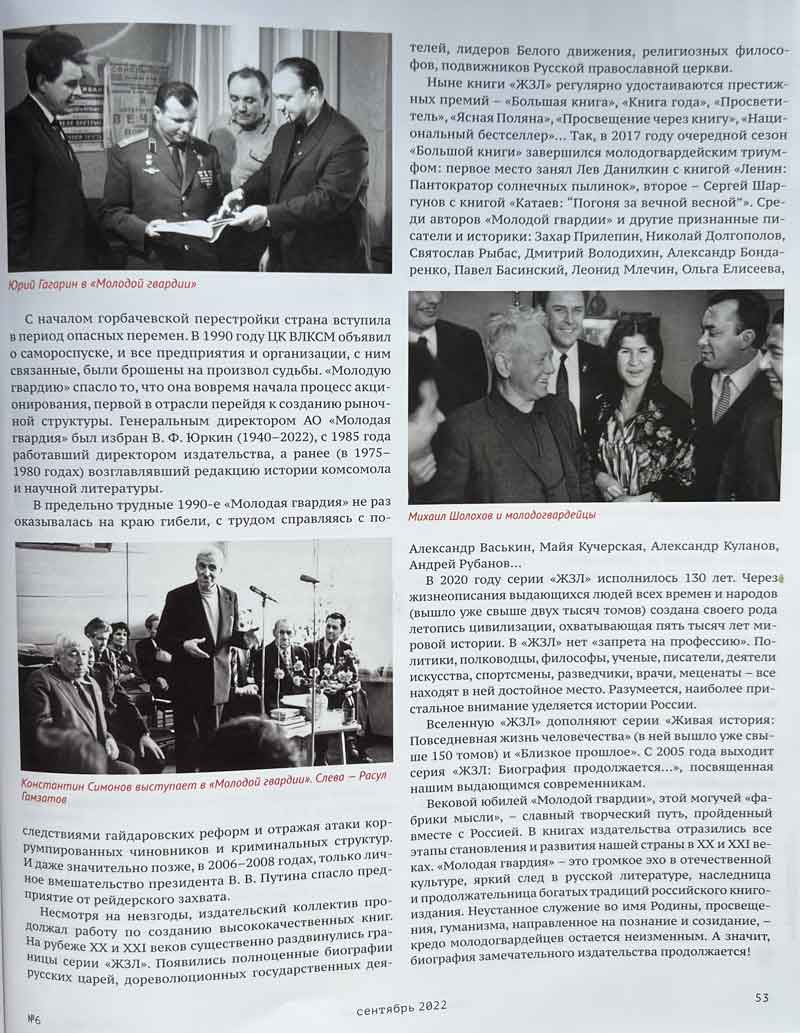 Огромное спасибо издательству – что удалось сохранить себя, сохранить уникальную серию «ЖЗЛ»! Спасибо всем, кто пишет, кто издает, кто продает. Пожелать хочется одного: чтобы ваши книги были доступны читателю. Чтобы все мы погружались в «Молодую гвардию». Так мы становимся и моложе, и честнее.»