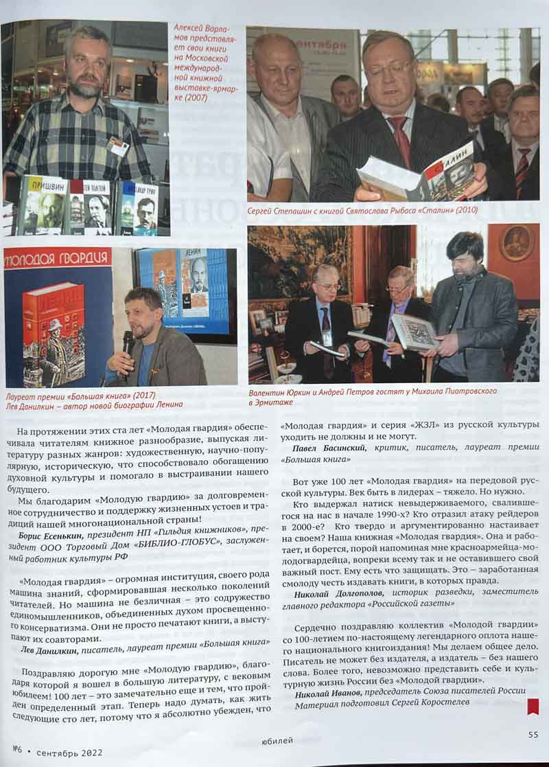 По случаю 100-летия издательства «Молодая гвардия» в журнале «Книжная индустрия» опубликован комментарий Сергея Степашина