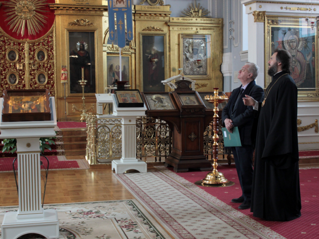 Георгий Вилинбахов, заместитель генерального директора Государственного Эрмитажа, подчеркнул особую связь музеев и церкви. В частности, он остановился на истории полковых церквей Петербурга и традиции хранения штандартов и знамён в Зимнем дворце и полковых храмах.