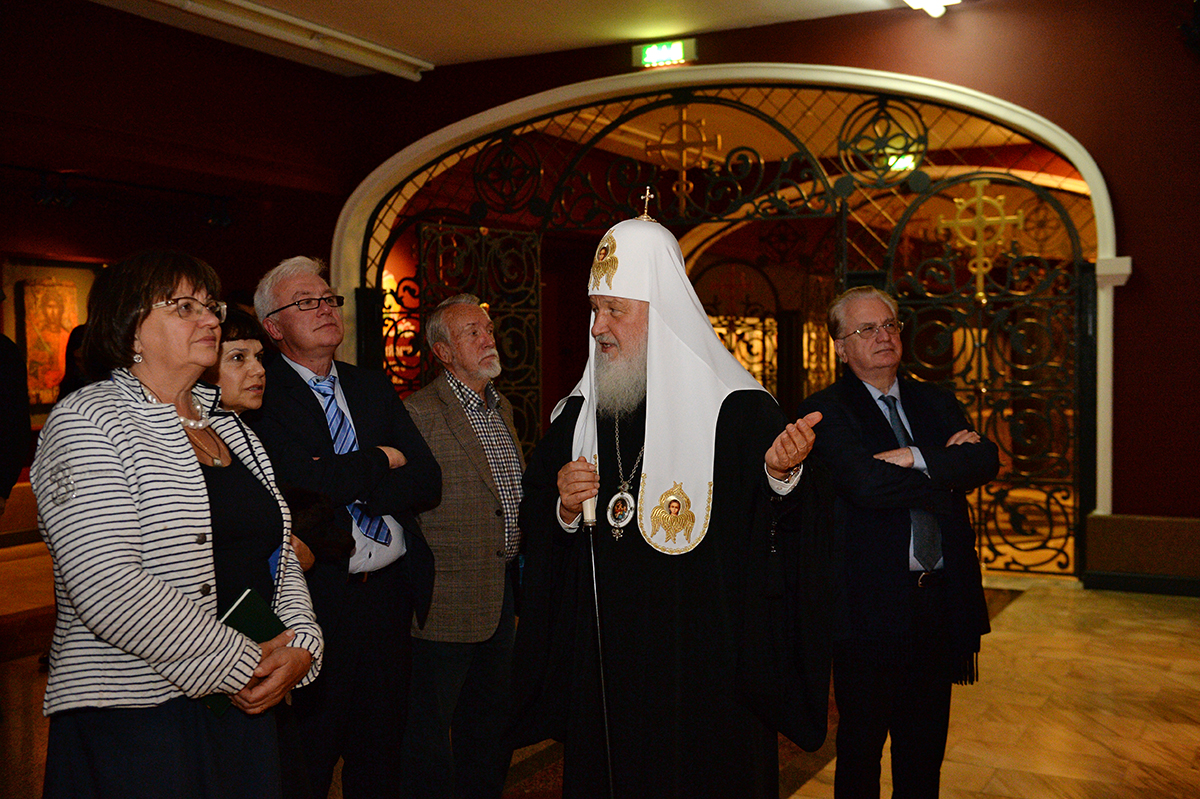 По окончании беседы Предстоятель Русской Православной Церкви пригласил гостей посетить Патриарший музей церковного искусства в Храме Христа Спасителя. Святейший Патриарх рассказал об истории формирования коллекции и ознакомил гостей с наиболее яркими произведениями церковного искусства, представленными в экспозиции музея.