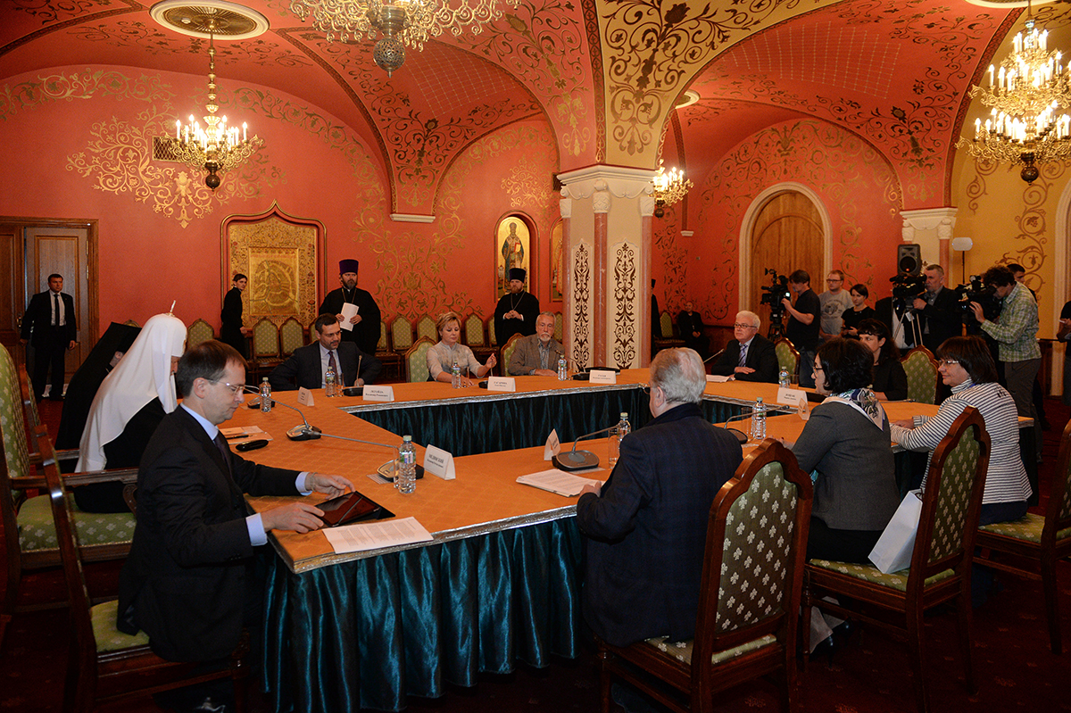 От лица руководителей крупнейших музеев Предстоятеля Русской Церкви приветствовал М. Б. Пиотровский, Почётный член ИППО, руководитель Санкт-петербургского отделения ИППО: «Огромное спасибо за эту встречу, потому что она очень нужна и на самом деле очень своевременна. Всем мыслящим людям понятно, что никаких оснований для конфликта между Церковью, музеями и культурой нет», – заявил президент Союза музеев России.