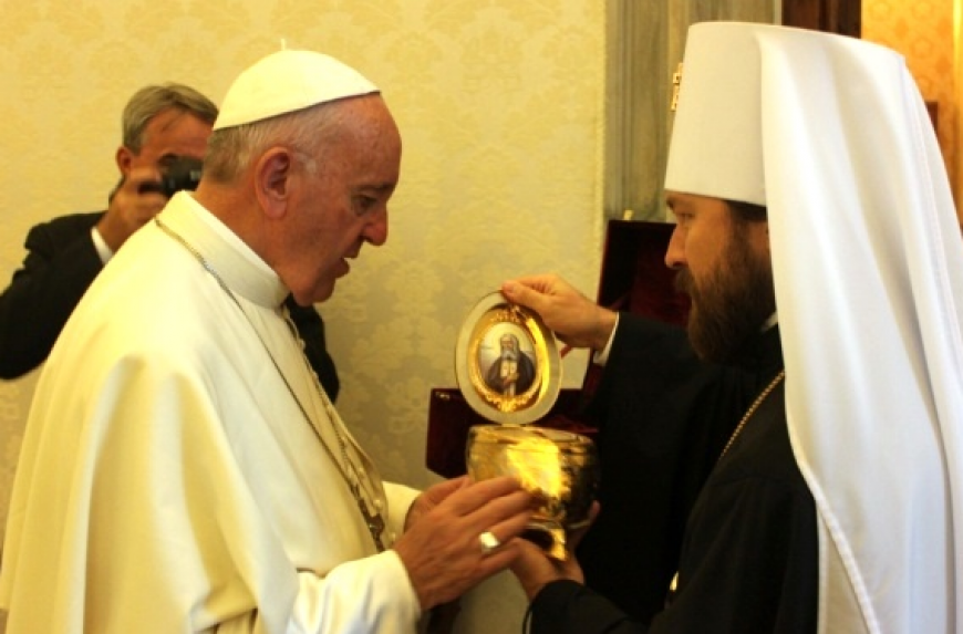 Папа Франциск и митрополит Иларион отметили положительный опыт сотрудничества по оказанию помощи ближневосточным христианам во исполнение решений, принятых в ходе встречи на Кубе.
