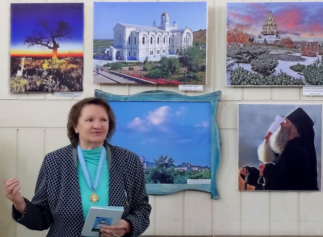 На выставке представлено около 40 самых разных работ - это красивый тихий Дон, старейшие храмы и монастыри Области Войска Донского, Августовская чудотворная икона Божией Матери со своей удивительной историей, портрет игумении Арсении Себряковой - знаменитой настоятельницы Усть-Медведицкого Спасо-Преображенского монастыря, в 2016 г. причисленной к лику местночтимых святых, а также мероприятия регионального отделения ИППО.