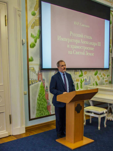 - Савельев Юрий Ростиславович, профессор МГУ им. М. В. Ломоносова, член ИППО, доктор искусствоведения, доклад «Русский стиль Императора Александра III и храмостроение на Святой Земле».