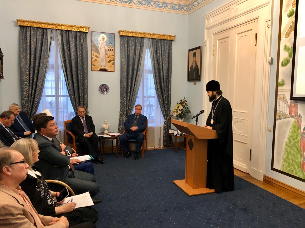 Член Совета ИППО, Патриарший экзарх Западной Европы митрополит Корсунский и Западноевропейский Антоний предал приветствие и благопожелание от имени Председателя Комитета Почётных членов Общества Святейшего Патриарха Московского и всея Руси Кирилла. Владыка отметил конструктивный, рабочий, плодотворный уровень взаимодействия между Императорским Православным Палестинским Обществом и Русской Православной Церковью. Митрополит Антоний поблагодарил Сергея Степашина и членов ИППО за активную деятельность, осуществляемую в местах русского зарубежья.