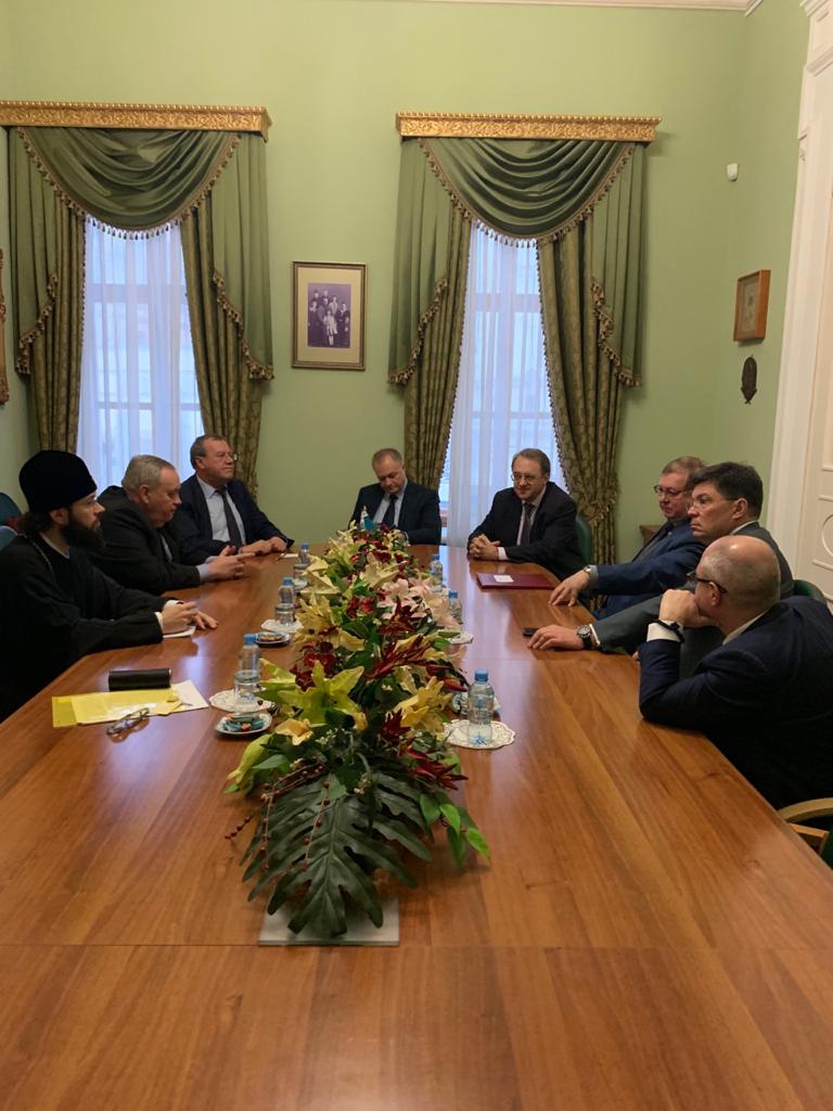 Далее с приветственным словом выступил заместитель Председателя ИППО, спецпредставитель Президента РФ по Ближнему Востоку и странам Африки, заместитель министра иностранных дел РФ Михаил Богданов, который от имени министра иностранных дел Сергея Викторовича Лаврова поздравил всех членов ИППО с наступающими праздниками. Михаил Богданов заверил, что МИД России будет продолжать плодотворное сотрудничество, поддерживать деятельность ИППО. Заместитель Председателя ИППО рассказал о своей недавней поездке в Сирию, где ситуация значительно улучшилась, и выразил надежду о возобновлении паломничества и в Египет, и на Синай, и к святым местам Сирии.