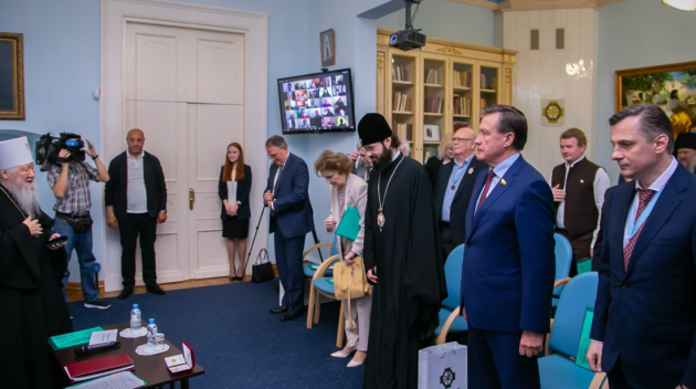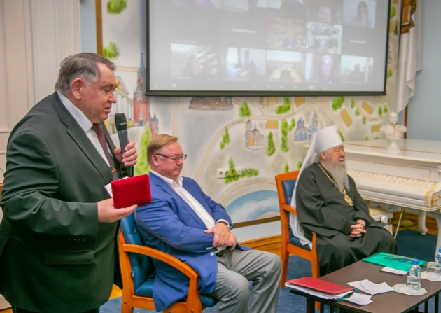 Перед началом заседания Председатель ИППО Сергей Степашин вручил владыке Почетный памятный знак «Орден Императора Александра III».