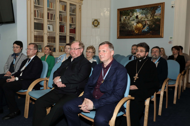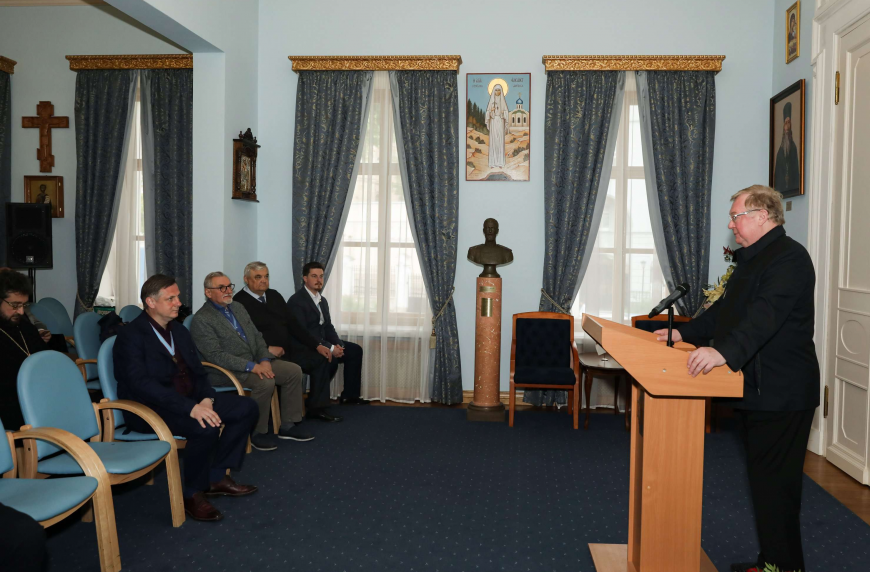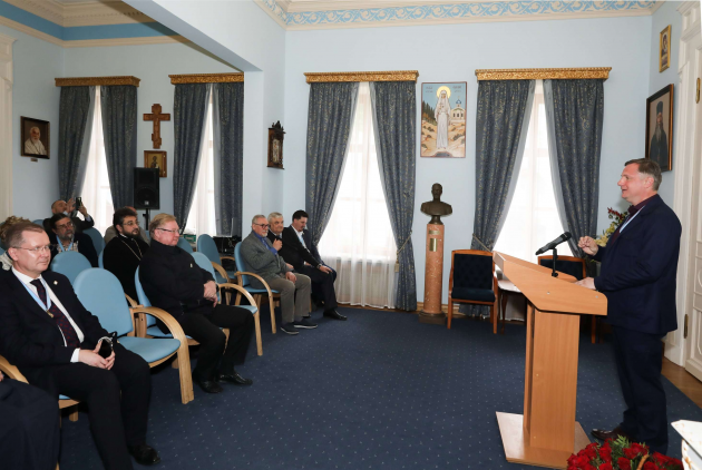 Затем выступил руководитель Научной секции ИППО Сергей Житенёв, который рассказал о том, как было создано Общество 141 год тому назад на собрании элиты Российской Империи в Николаевском дворце в Санкт-Петербурге, в день памяти святых равноапостольных императора Константина Великого и императрицы Елены. Учредительное собрание утвердило Устав, название и девиз Общества: «Не умолкну ради Сиона и ради Иерусалима не успокоюсь». Таким образом, державной волей Всероссийского Императора Александра III Александровича в 1882 г. с целью поддержания Православия в Святой Земле, организации и помощи русским православным паломникам в их путешествии в Палестину и пребывании в ней, а также для проведения научно-просветительской деятельности. Также Сергей Житенёв рассказал о современной научно-просветительской деятельности ИППО и основных мероприятиях до конца 2023 года.