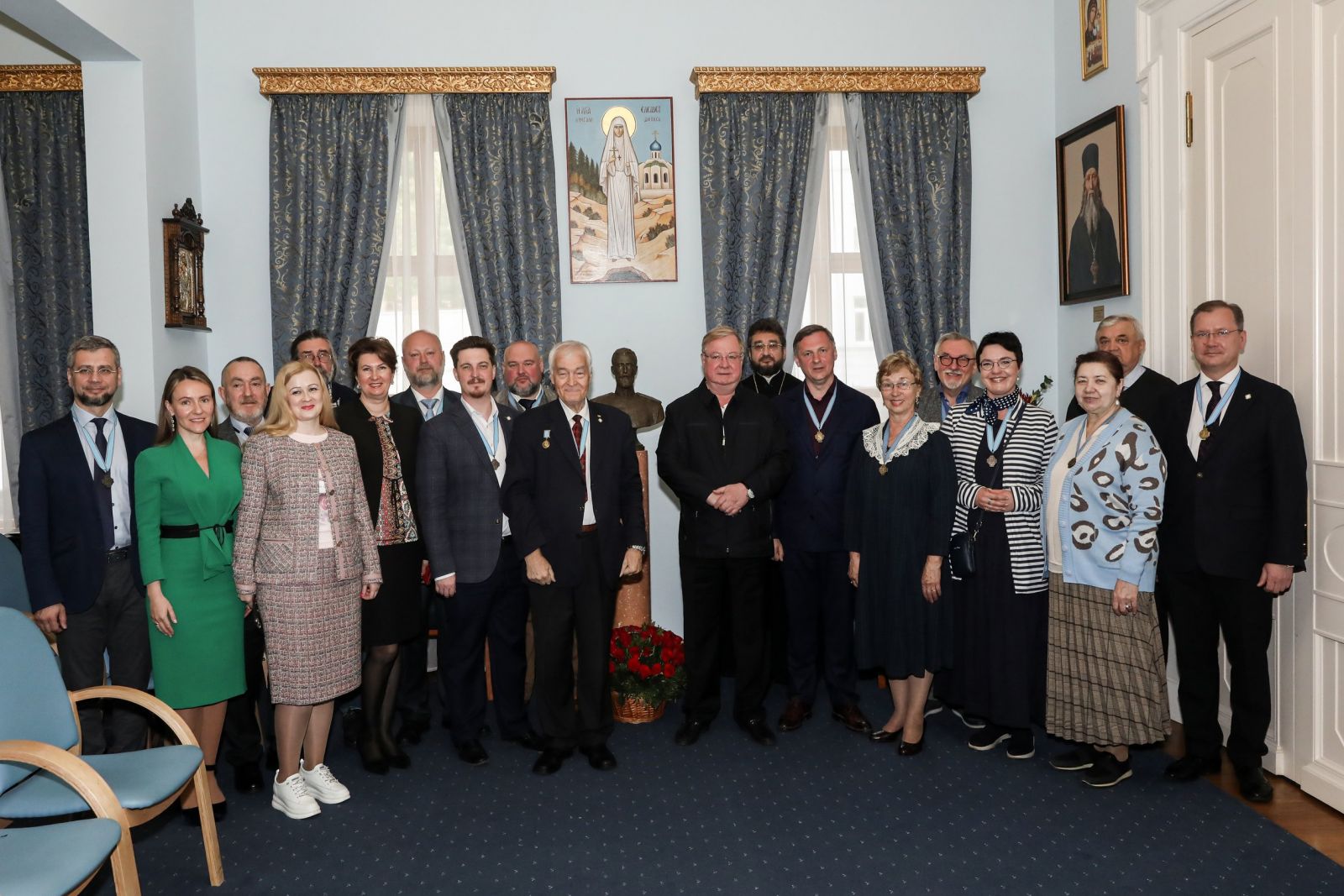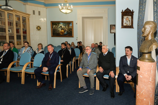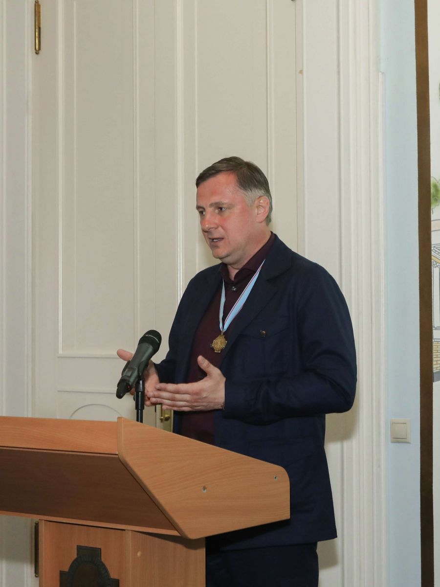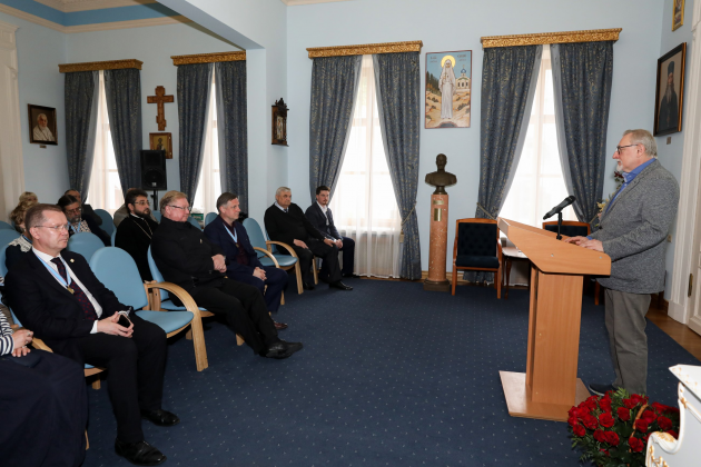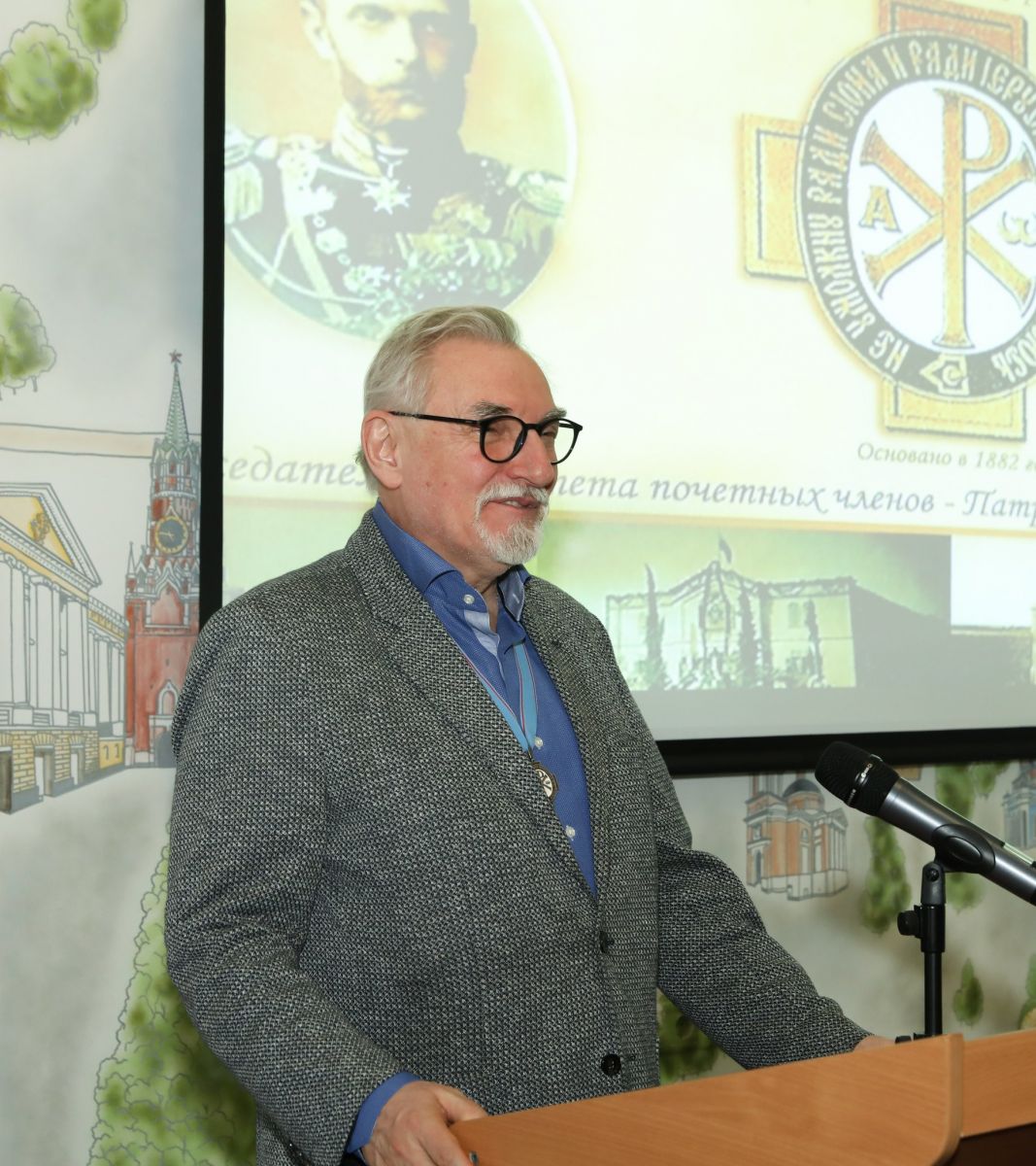 Далее выступил заместитель Председателя ИППО, руководитель Московского регионального отделения Общества Олег Шабуневич, который кратко проинформировал участников торжественного собрания о сборе гуманитарной помощи для отправки на Донбасс и новые российские территории. Он выразил большую благодарность всем членам Общества за активную поддержку гуманитарной деятельности ИППО, которая осуществляется в соответствии с традициями благотворительности, заложенными первыми Председателями ИППО Великим князем Сергием Александровичем и Великой княгиней Елизаветой Феодоровной.