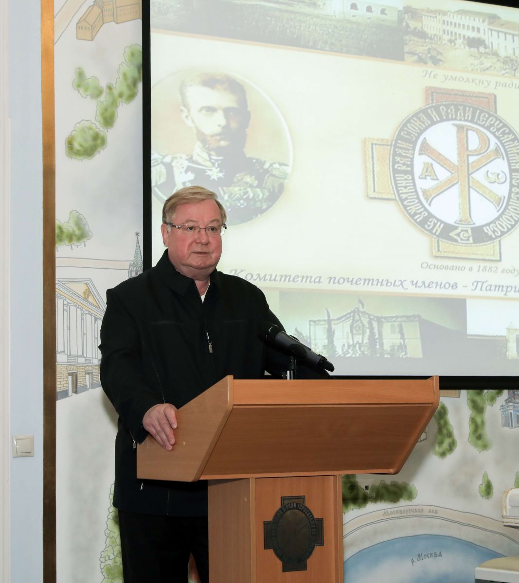 Заседание открыл Председатель ИППО Сергей Степашин, который кратко напомнил участникам собрания историю Общества и ту роль, которую в этом сыграли основатели и первые руководители ИППО Великий князь Сергий Александрович, преподобномученица Великая княгиня Елизавета Феодоровна и Василий Николаевич Хитрово, а также многие другие деятели Общества.