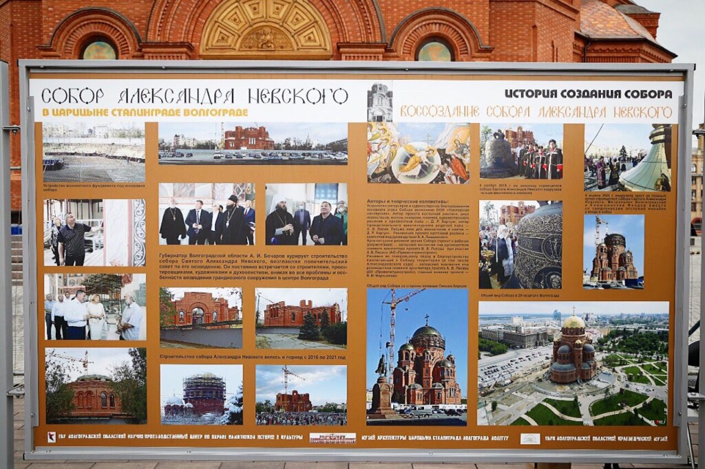 Жители и гости города могут увидеть уникальные старинные фотографии, ознакомиться с историей закладки и строительства храма святого князя Александра Невского в Царицыне. Также в материалах выставки отражен период воссоздания собора в современном Волгограде.