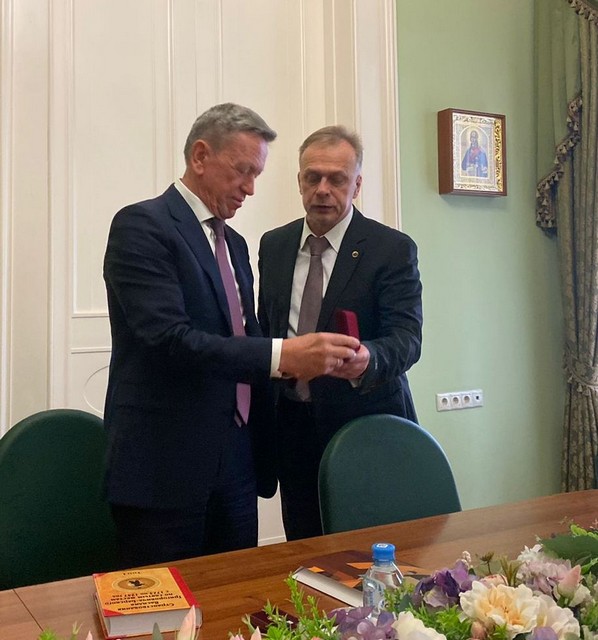 Петр Бурак вручил Председателю ИППО Сергею Степашину медаль РАЕН В.И. Вернадского «За особые заслуги перед наукой и РАЕН».