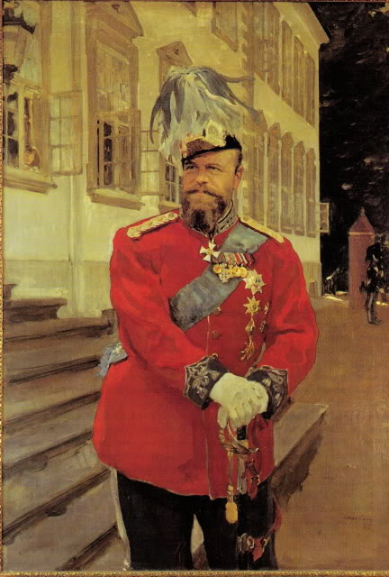 Многих может удивить факт нахождения портрета российского государя на родине русалочки. Но на самом деле ничего удивительного нет, во-первых, супруга Александра III была дочерью датского короля и волей-неволей императору приходилось навещать семью свекра в Копенгагене. Помимо гостевания, Александр III стал шефом Королевской лейб-гвардии. Потому-то после смерти императора именно датские военные и заказали Серову этот портрет. Причем, позировал для него рослый датский солдат, одетый в царский мундир. А лицо царя Серов писал по фотографии.
