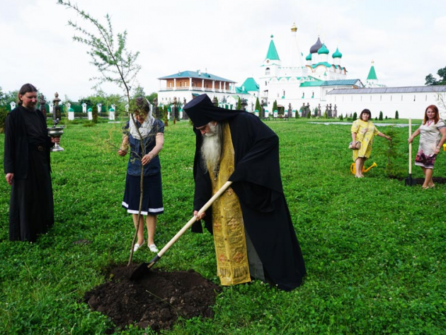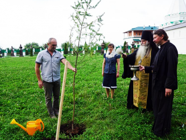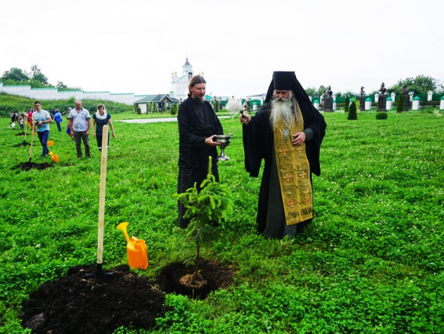 Перед началом посадки заместитель председателя Нижегородского отделения Императорского Православного Палестинского Общества, настоятель Печерского монастыря архимандрит Тихон (Затёкин) отслужил молебен перед началом «Доброго делания», после чего освятил молодые саженцы святой водой.
