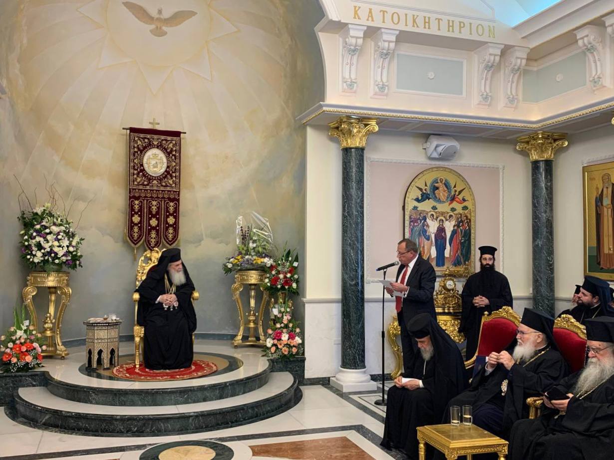 Посол России в Израиле, действительный член ИППО Анатолий Викторов нанёс визит Блаженнейшему Патриарху Святого града Иерусалима и всей Палестины Феофилу III