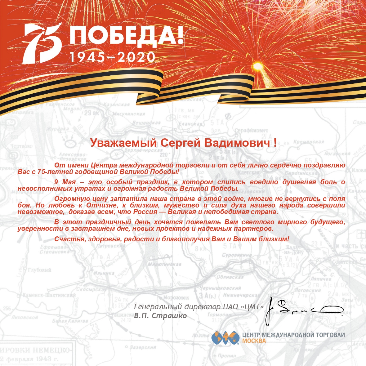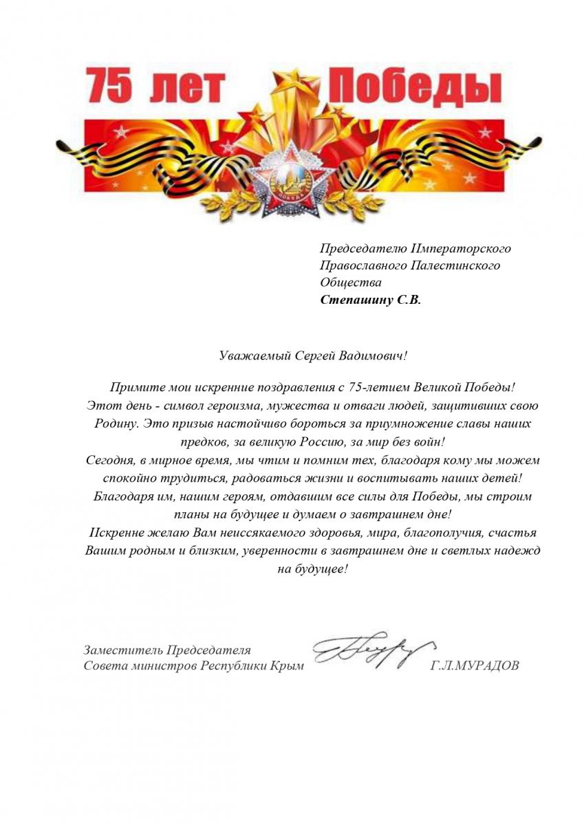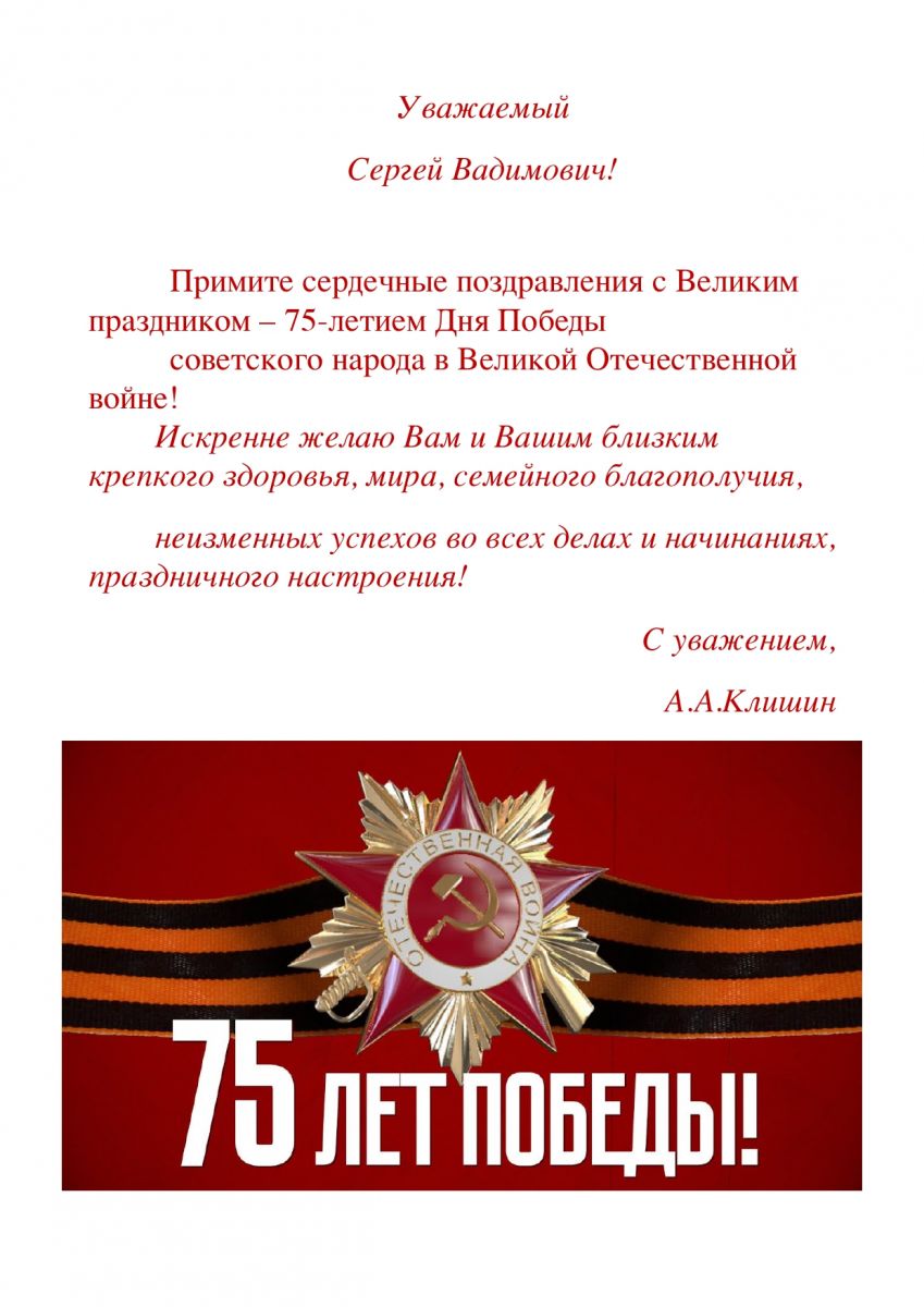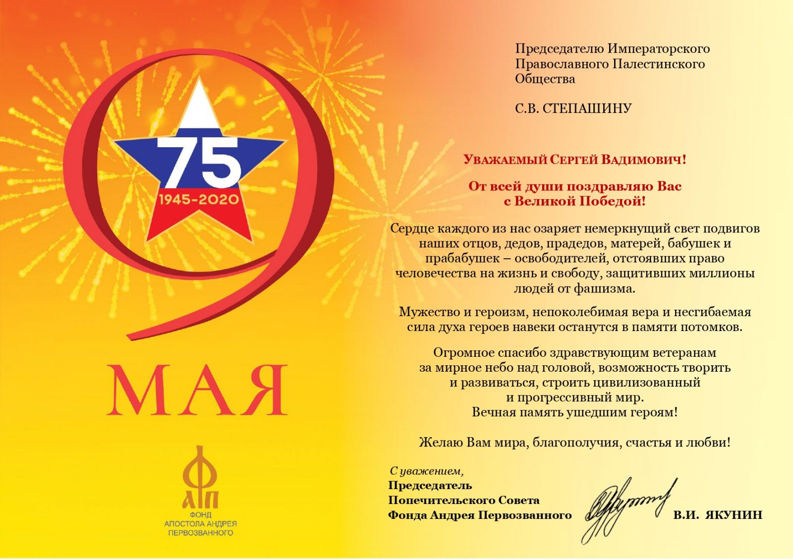 Поздравления с 75-летием Победы в адрес Сергея Степашина