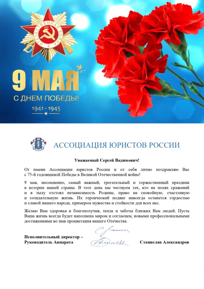 от исполнительного директора, руководителя Аппарата Ассоциации юристов России Станислава Александрова