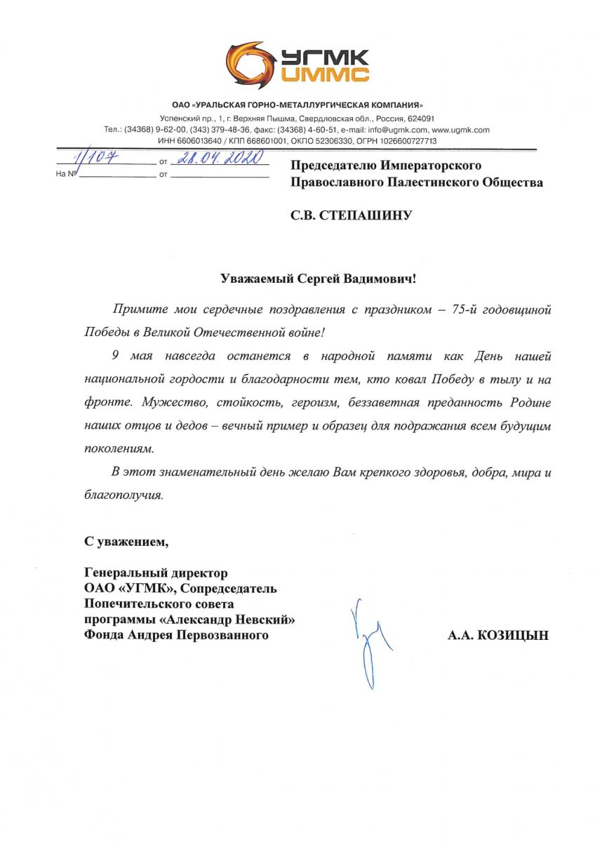 В адрес Председателя ИППО, экс-премьера России, генерал-полковника Сергея Степашина поступил ряд поздравлений с 75-летием Великой Победы.