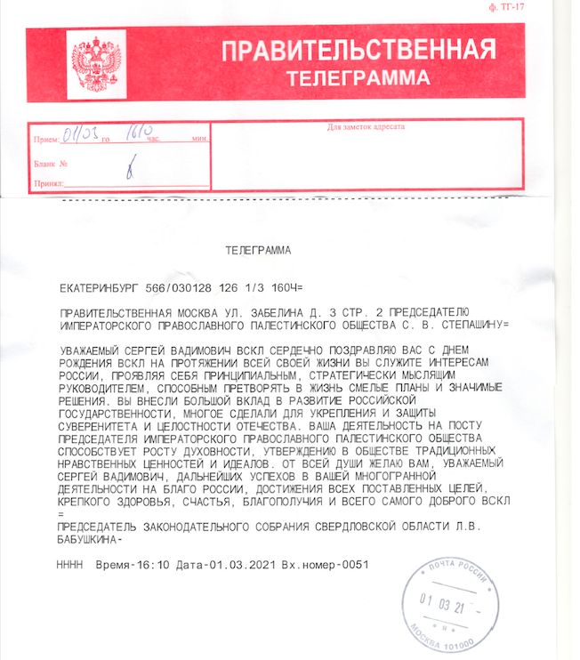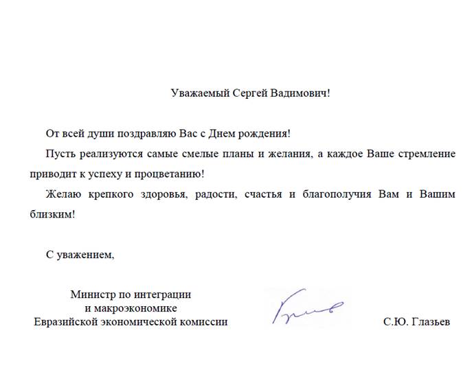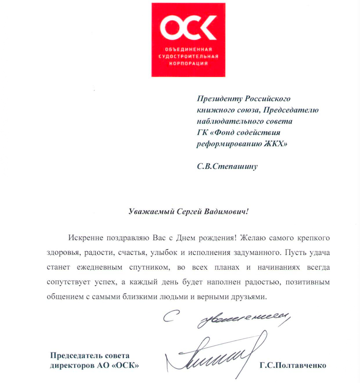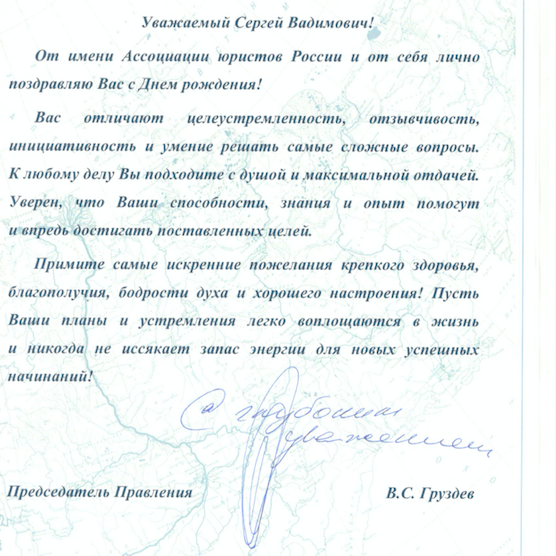 Сергей Вадимович благодарит всех за поздравления и желает каждому крепкого здоровья, благополучия и новых успехов на благо нашего Отечества.