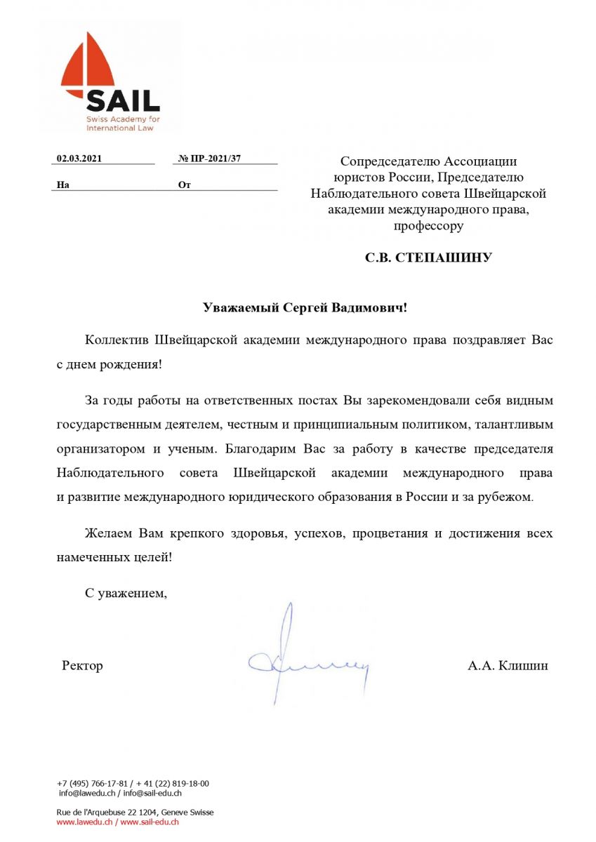 От ректора Швейцарской академии международного права