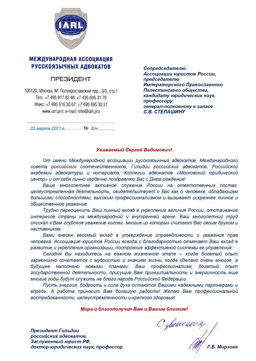 От председателя Правления Ассоциации юристов России