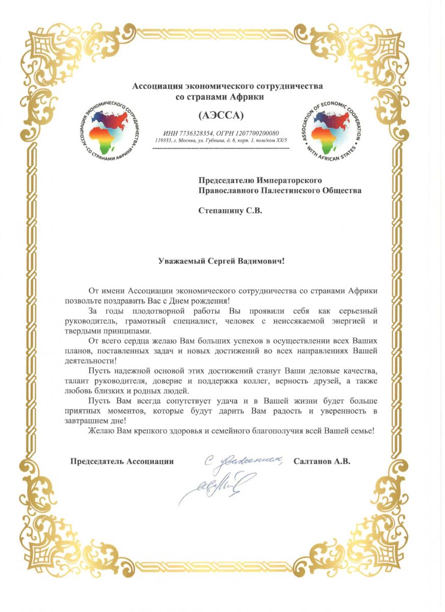 От Председателя Ассоциации экономического сотрудничества со странами Африки