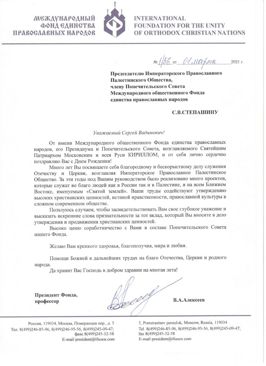 От Президента международного Фонда единства православных народов