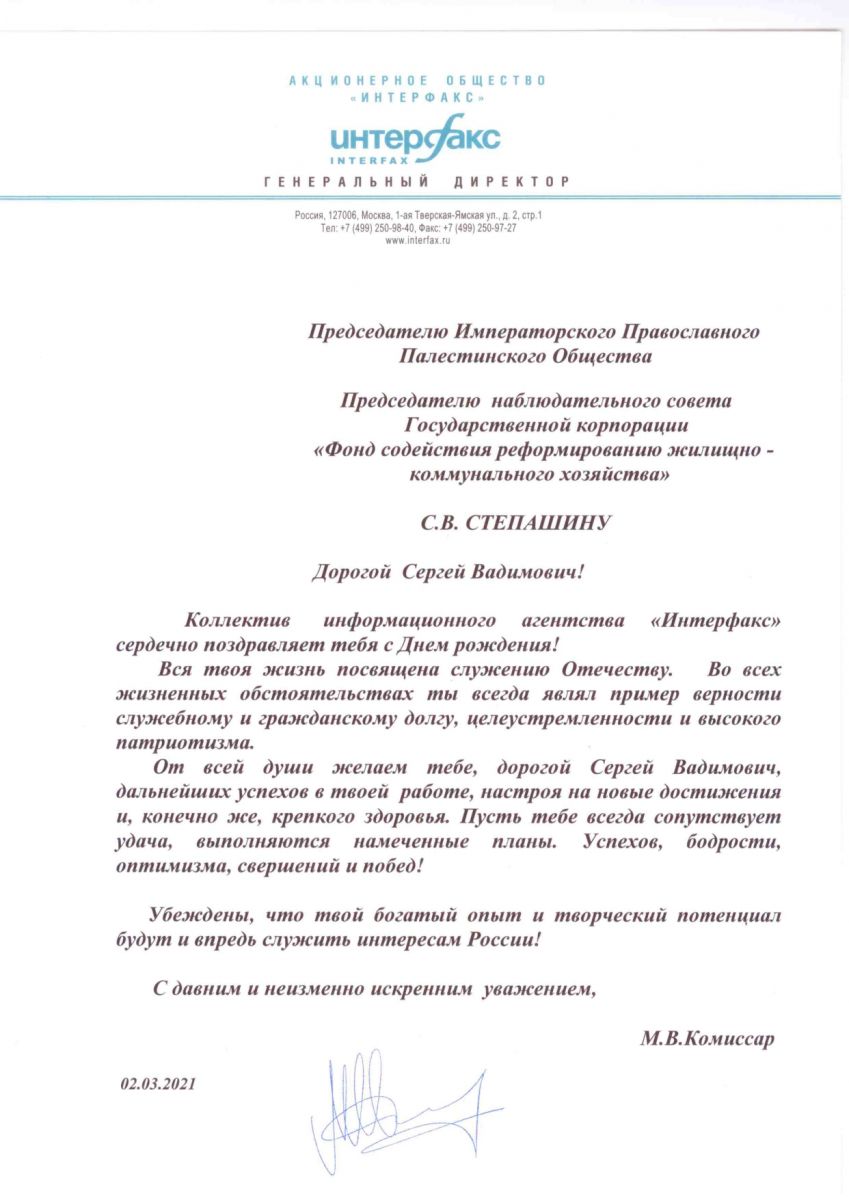 От Генерального директора информационного агентства «Интерфакс»