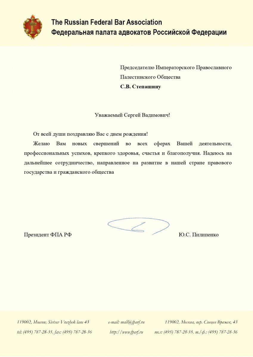 От Президента Федеральной палаты адвокатов Российской Федерации
