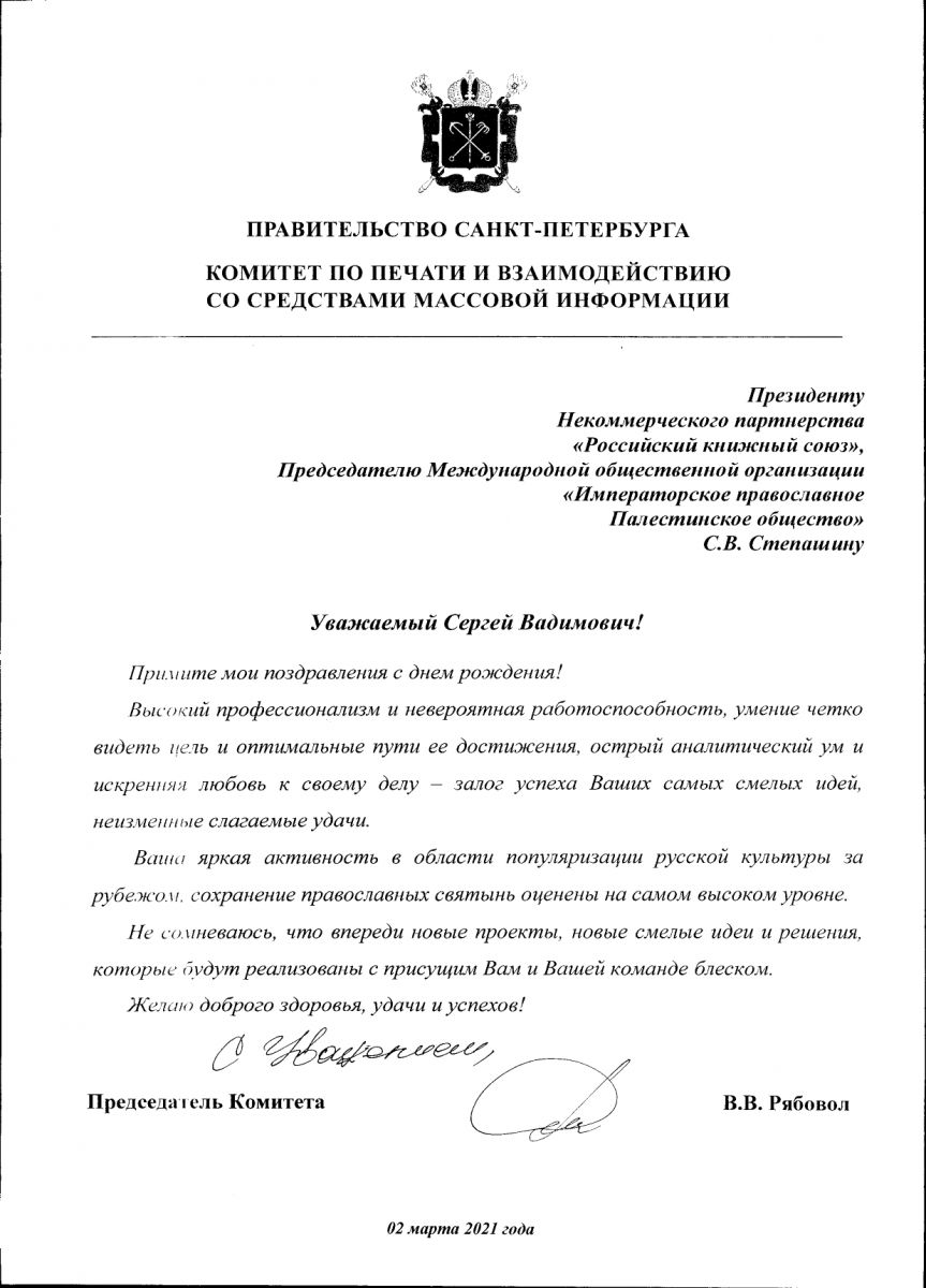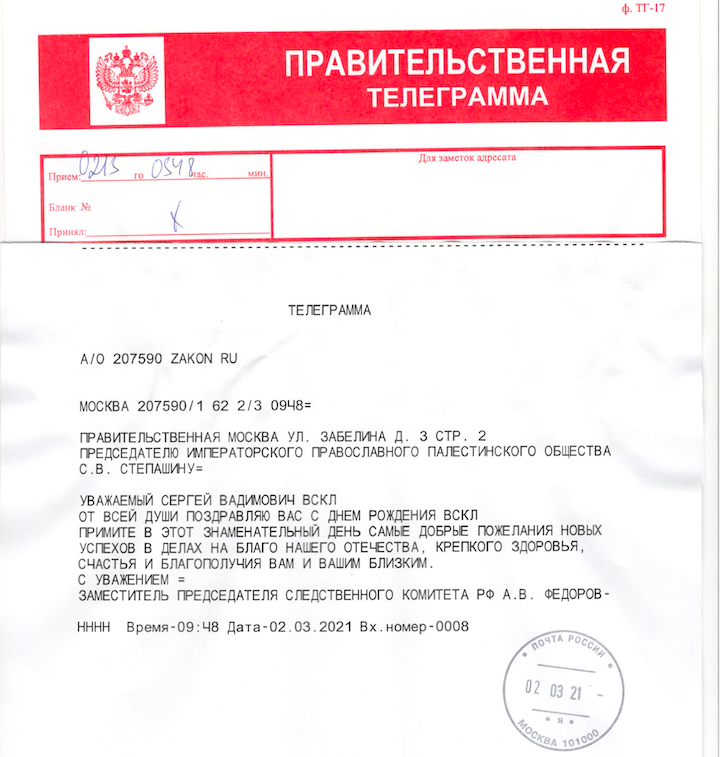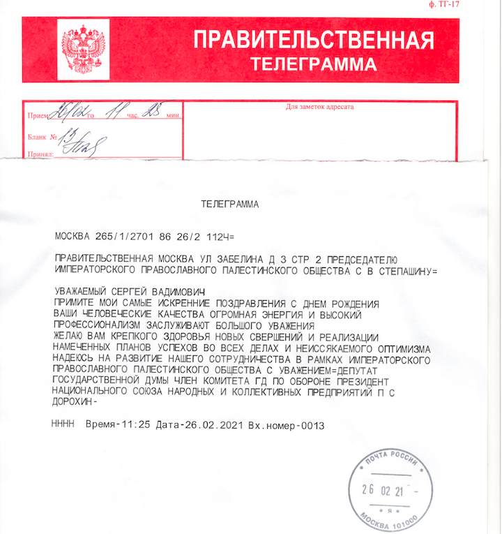 В этот день в адрес Председателя ИППО поступили сотни поздравлений от государственных, общественных и религиозных деятелей, действительных членов ИППО и друзей Общества. Здесь опубликована лишь малая часть: