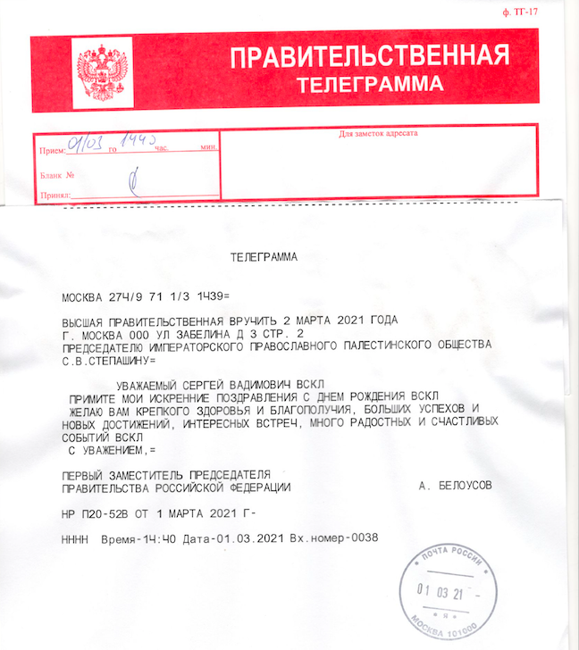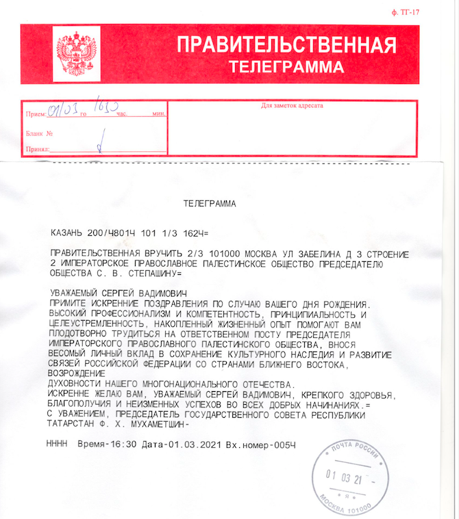 От Начальника Русской Духовной Миссии в Иерусалиме