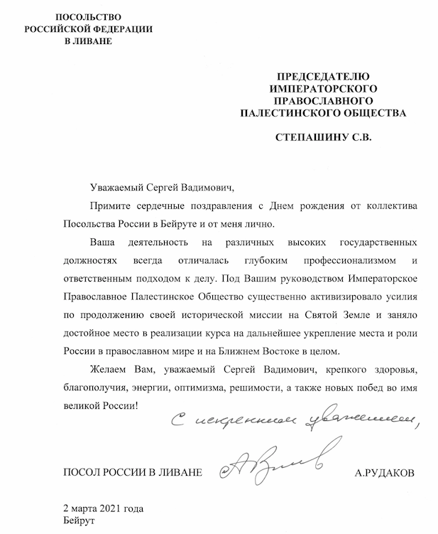 От Чрезвычайного и Полномочного Посла Российской Федерации в Ливане