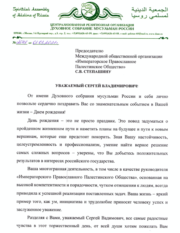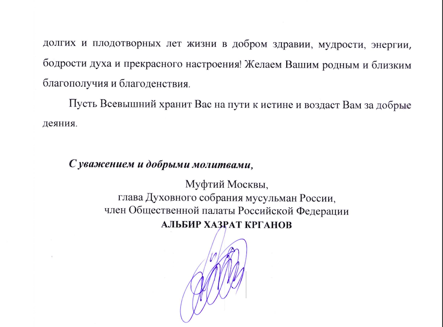 От главы Духовного собрания мусульман России, муфтия Москвы