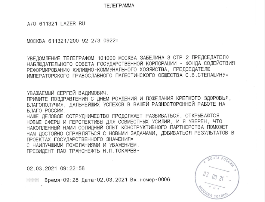 От президента ПАО «Транснефть»