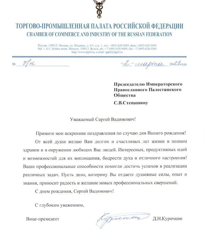 От вице-президента Торгово-промышленной палаты РФ