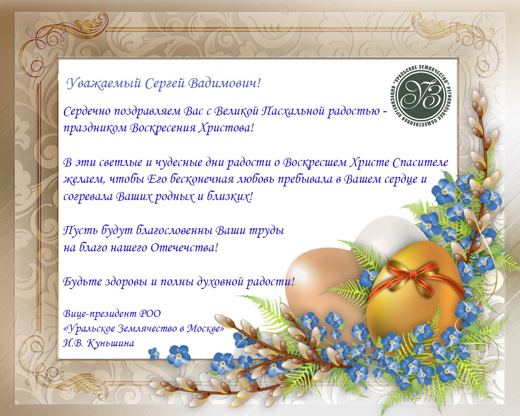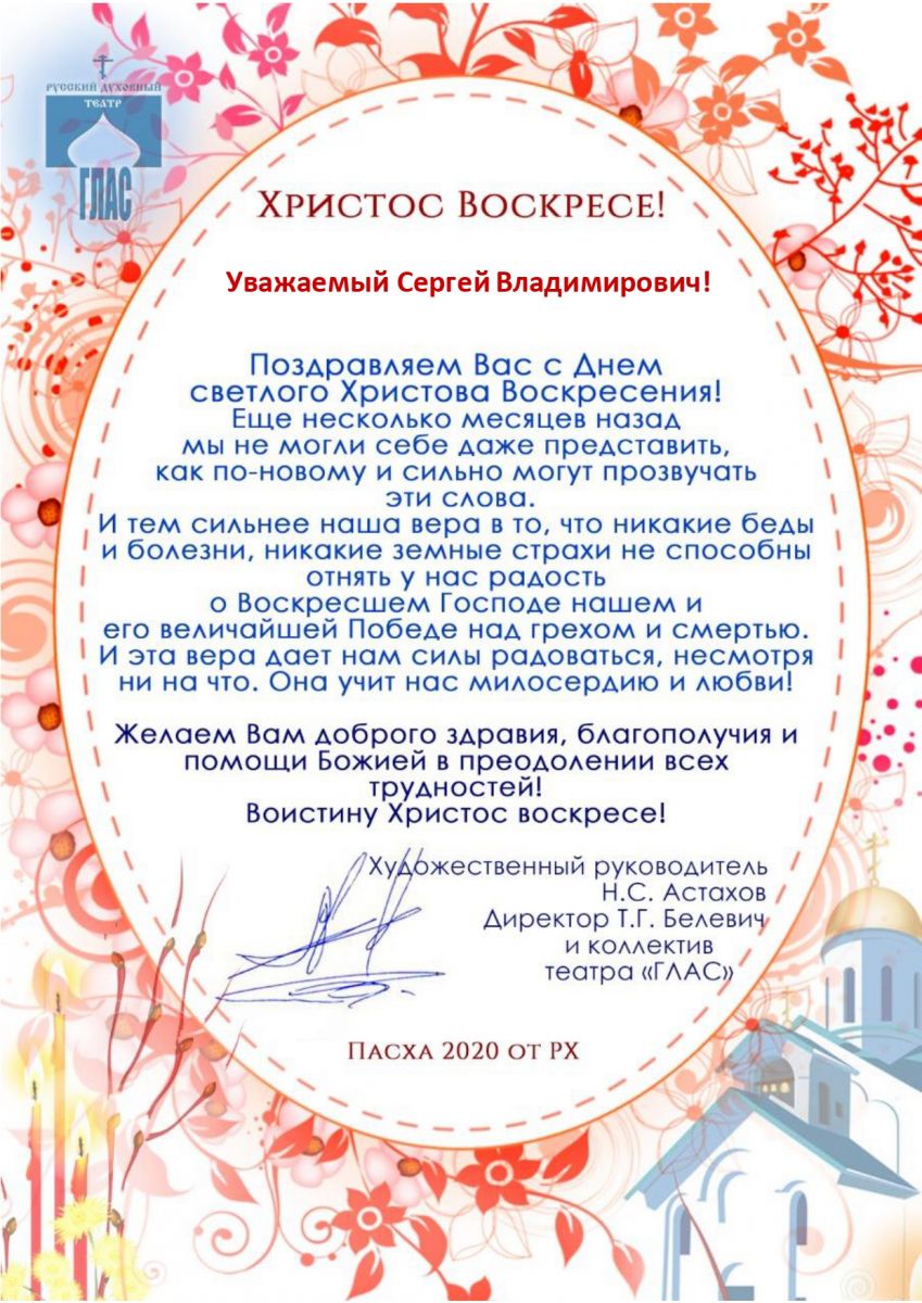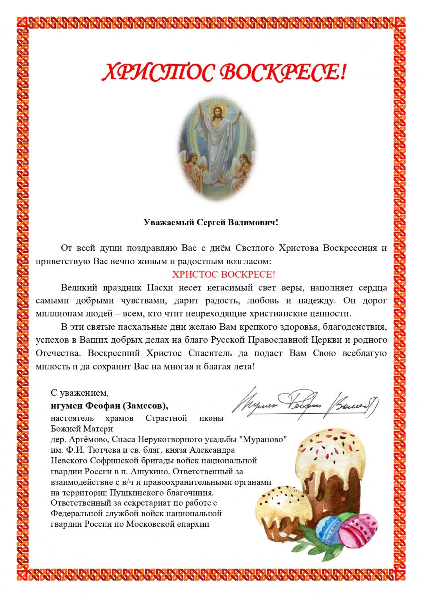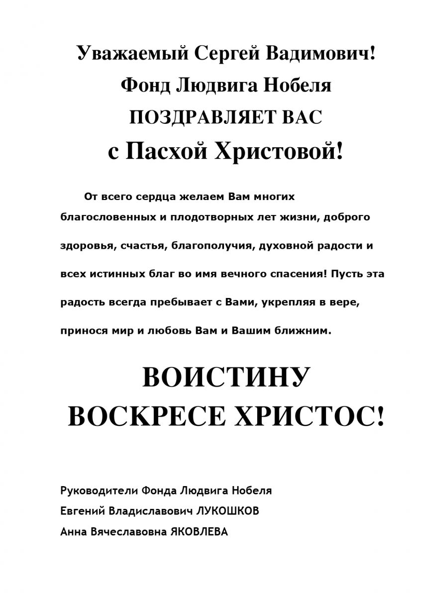 Поздравления со Светлым Христовым Воскресеньем в адрес Сергея Степашина