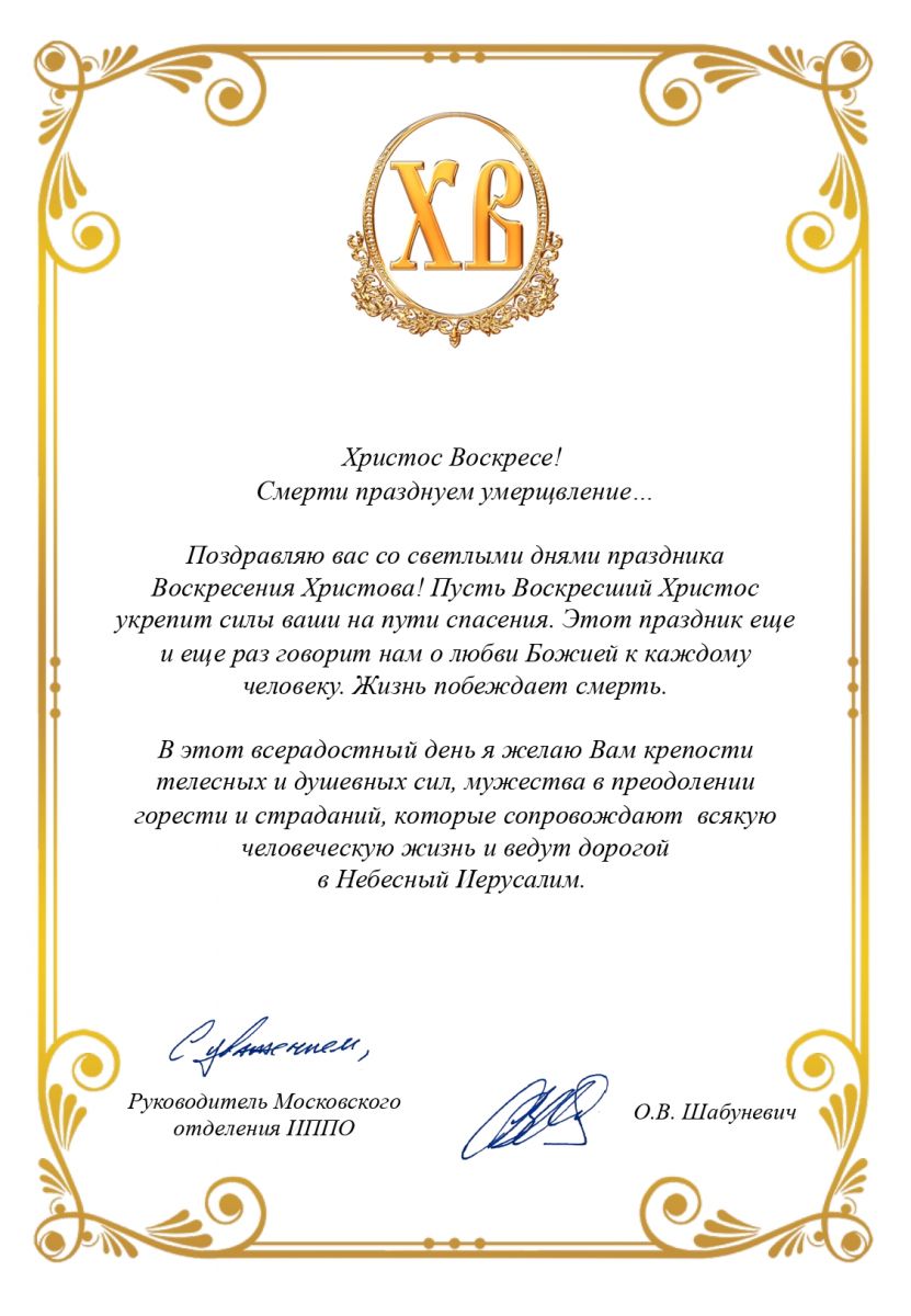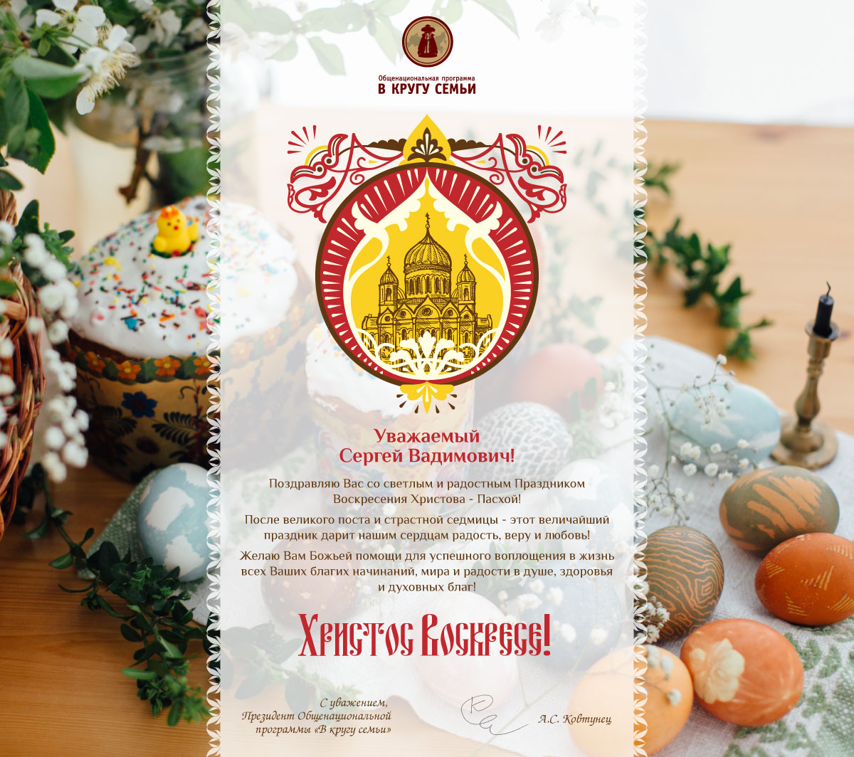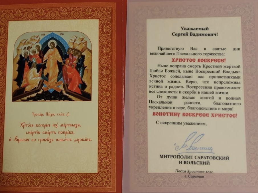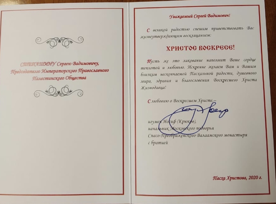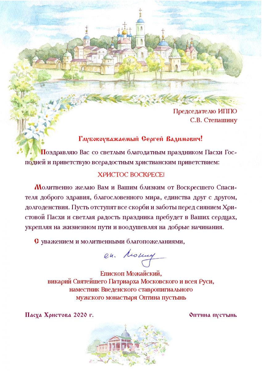 В адрес Председателя ИППО Сергея Степашина поступили ряд поздравлений со Святой Пасхой: