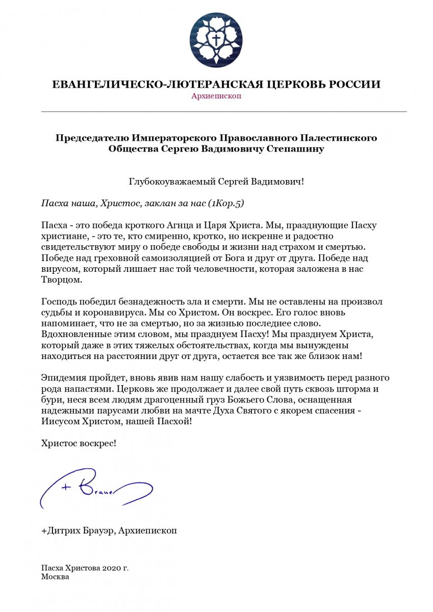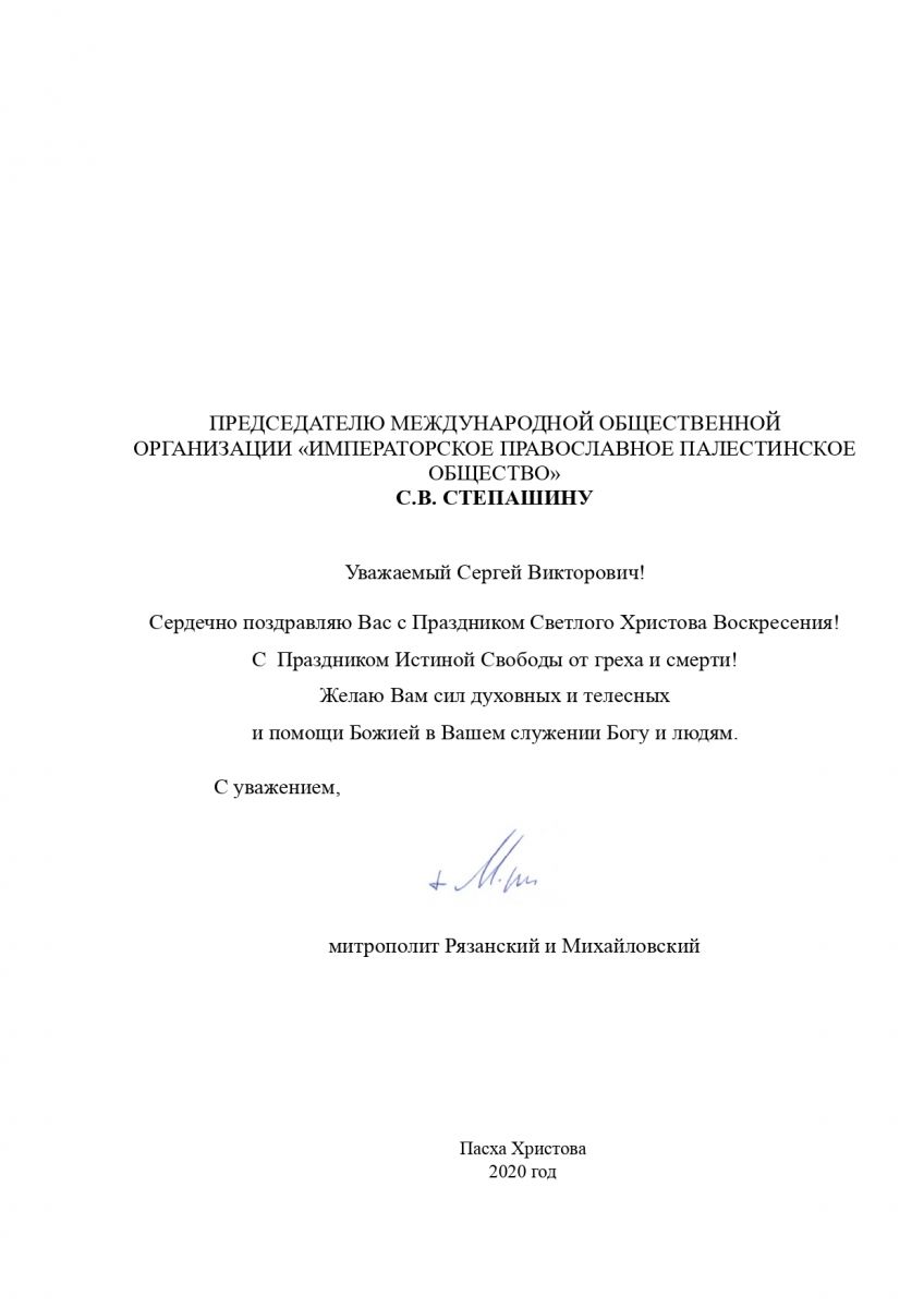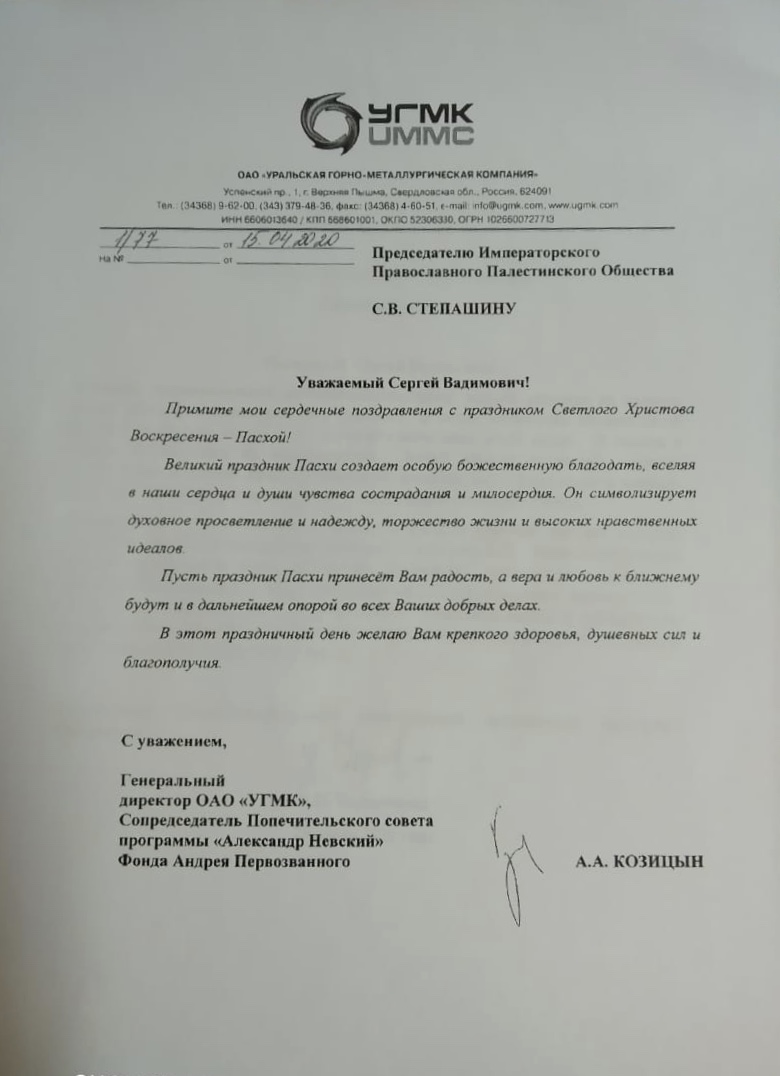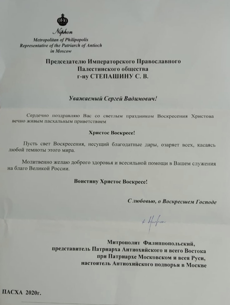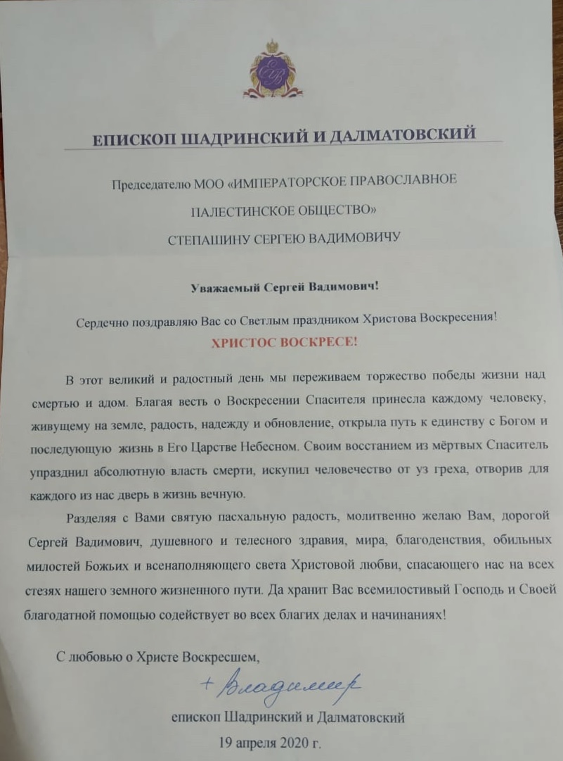 В адрес Председателя ИППО Сергея Степашина поступили ряд поздравлений со Святой Пасхой: