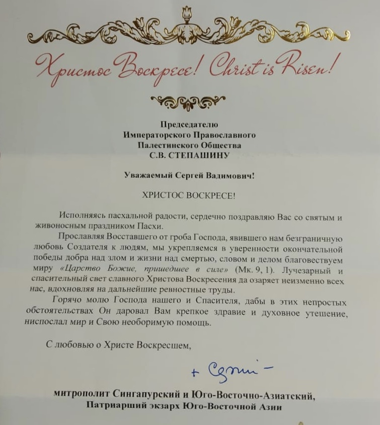 от митрополита Сингапурского и Юго-Восточно-Азиатского Сергия
