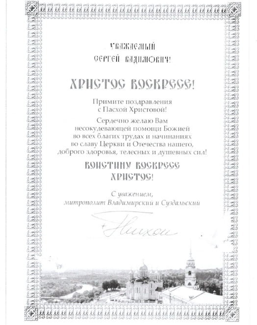 от митрополита Владимирского и Суздальского Тихона