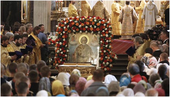 Ровно год назад мощи святого принесли и в Россию для поклонения верующим: впервые за 930 лет часть мощей Николая Угодника покинули итальянский город Бари. Тогда в Москве и Петербурге за 67 дней им поклонились 2,4 миллиона человек.
