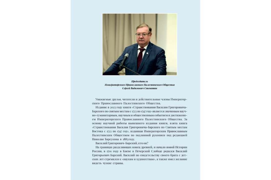 Предисловие к I тому книги «Странствования Василия Григоровича-Барского по святым местам с 1723 по 1747 год» Председателя ИППО Сергея Степашина