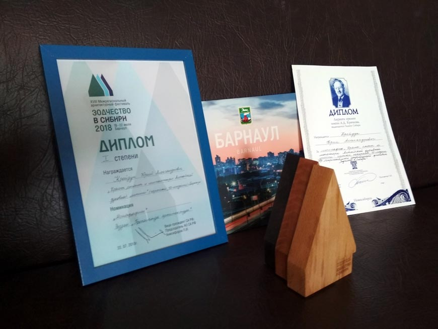 Также ему был вручён диплом лауреата премии им. А. Д. Крячкова, выдающегося зодчего Сибири. Данная награда учреждена и вручается Сибирским отделением Российской академии архитектуры и строительных наук.